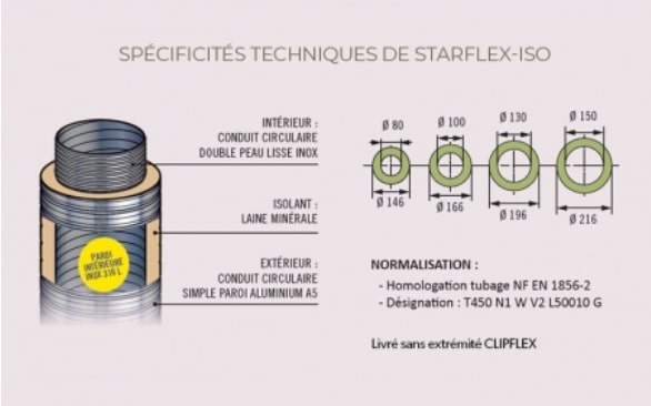CONDUIT FLEXIBLE ISOLE INOX LISS 316 INT ET ALUMINIUM EXTERIEURE CLASSEMENT T45O N1 W V2L50010 G80 NF EN1856-1 DISTANCE DE SECURITE 80mm ou 40 mm e...
